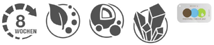 Wirkstoffe / Inhaltsstoffe: Kultursubstrat aus Hochmoortorf (H2 - H8), Ton (Tongranulat), Sand, Kalk, NPK-Dünger, mineralischem Spurennährstoffdünger